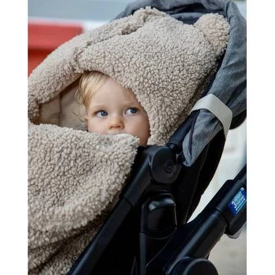 The BébéPOD Teddy is the perfect sweatshirt-like infant bunting for milder temperatures featuring a soft plush lining and a fluffy teddy outer shell for maximum comfort. Adapt the BébéPOD to your car seat or stroller as you see fit. This snuggly teddy footmuff has a detachable cover that turns into a single-panel blanket on warmer days where the back is not a necessity. When it’s crisp outside and the family is ready for a stroll, the BébéPOD Teddy will cradle baby to sleep in no time.