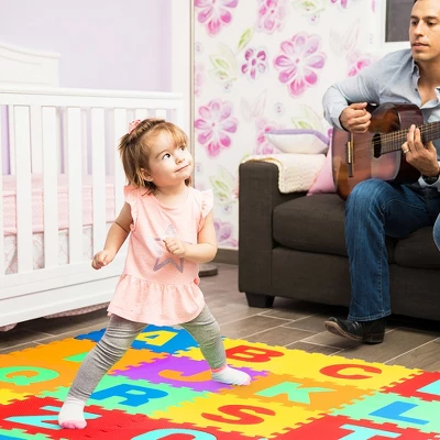 Constructed of BPA free, phthalate free and lead free EVA foam, this baby play mat with ASTM certification is odorless and safe for your little one. And the waterproof surface is easy to clean. Besides, the thick and anti-slip floor mat is the perfect assistant for your baby learning how to crawl and walk. The removable alphabet and numbers with different colors are good for early childhood development. This mat not only serves as a play mat for your baby, but also uses it as a yoga mat for you. Additionally, the interlocking design makes installation and storage quite easy.