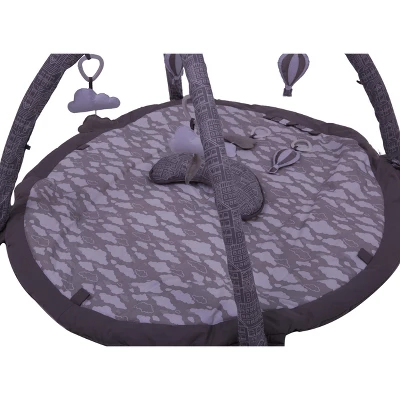 - Bacati Baby Activity Gym includes play mat, arches with 4 toys and crescent moon shaped pillow packaged in a polyzipper bag
