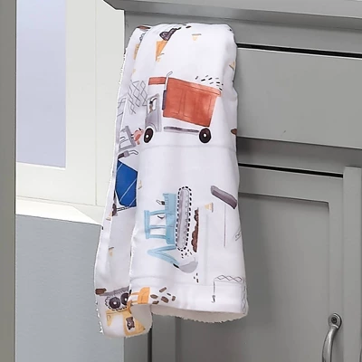 Wrap your little one in comfort with this soft and cozy baby blanket. The front is polar fleece material featuring colorful watercolor construction vehicles and the back is a warm and cozy white sherpa. It is sized at 30” X 40” making it a perfect sized stroller blanket. This blanket makes a great baby shower gift or welcome home baby gift.