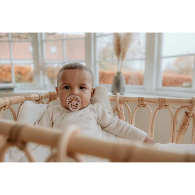 The BIBS Boheme pacifier has a romantic and artistic silhouette inspired by mother nature. The BIBS natural rubber baby pacifier allows your child to self-soothe by exercising their sucking instinct in the most natural way possible, by mimicking both the shape and soft materials of mother’s breast. This paci is recommended by midwives to support natural breastfeeding. 100% free from BPA, PVC and phthalates. Designed and manufactured in Denmark.