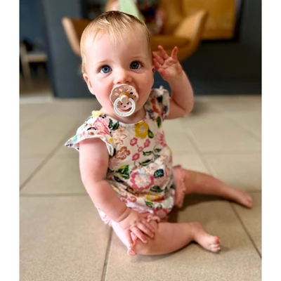 Available in two sizes: Size 1 (0+ months) & Size 2 (6+ months).