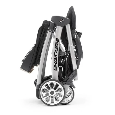 The BravoFor2 is designed with a one-hand, ultra-compact quick fold for easier maneuvering and storage. An integrated handle easily activates the fold and simultaneously rotates the front wheels inward to keep the folded unit standing. Once the stroller is closed, the fold handle also doubles as a carry handle.