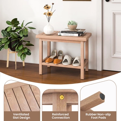 - Spacious Storage Areas: With 2 tiers of storage space, this waterproof bath stool holds bath necessities for easy access. And the narrow gaps between slats can avoid water accumulation effectively.
