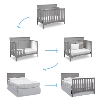The Fancy 4-in-1 Standard Full-Sized Crib from Delta Children® grows with your little one from newborn bundle into adulthood. The simple straight-line design complements any nursery decor. As your newborn grows, the adjustable height allows you to lower the mattress to avoid late night escapes. Transition the crib into a toddler bed or daybed, and once your little one is not so little, you can transform the crib again into a full-size bed with the conversion rails (sold separately).