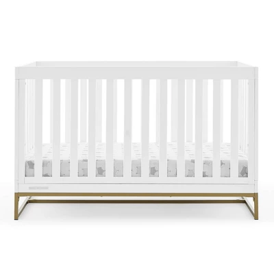 The Jade 4-in-1 Convertible Crib by Delta Children is the new gold standard for modern nurseries with its gorgeous bronze metal base. Stylish and safe, it’s GREENGUARD Gold Certified, which means it’s built to contribute to cleaner air for a healthy home. A standout piece for years to come, this crib features an adjustable mattress support that allows you to lower the mattress height as your baby grows. When your child is ready, its versatile design easily adapts from crib to a cozy toddler bed, daybed and sofa (Daybed/Sofa Rail included; Toddler Guardrail #0094 sold separately). The Jade 4-in-1 Convertible Crib by Delta Children is available in Bianca White and Ebony. Coordinates with the Jade Changing Table (sold separately).