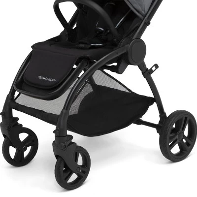 Light, compact and easy to maneuver, the Revolve Reversible Stroller by Delta Children is ideal for everything from city streets to park paths. With three ways to ride, its reversible seat can be positioned facing you or facing the world, and a car seat adapter allows you to easily attach the most popular car seats to the frame (car seat and adapter sold separately). Offering premium features any parent will appreciate, this ultramodern stroller has an expandable knit canopy with zippered peek-a-boo window and a soft, leather wrapped handlebar and child bar. Its reclining seat, adjustable footrest and all-wheel suspension system ensures the most comfortable ride for your little one. You’ll love the adjustable handlebar positions, spacious under-seat storage, as well as the front swivel wheels and one-step back break that allow you to easily maneuver the stroller in busy streets, airports or amusement parks. And, when you need to store or take the stroller with you, its super-lightweight aluminum frame with a compact, one-hand fold can be done in parent-facing or front-facing mode. Perfect for city or suburban living, the Revolve stroller combines style, performance and function to create the ultimate stroller for modern parents and their little explorers. Holds up to 50 lbs.