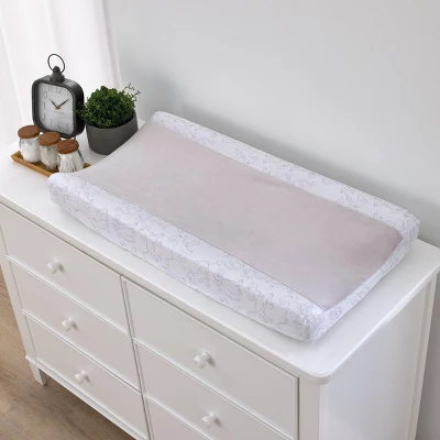 The Lion King Wild About You Changing Pad Cover features a cozy, solid taupe center with a taupe and white all-over Simba pattern on the sides. Measures 16″ x 32″ x 6″ and is machine washable for easy care. Made with super soft fabrics and fits a standard size contoured changing pad. Helps to keep baby comfortable and dry. Coordinates with the full line of Disney Lion King Wild About You crib bedding and accessories.