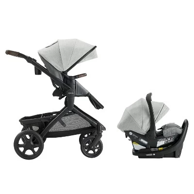 The Graco® Premier Modes™ Nest 3-in-1 Travel System makes it easy to stay connected with your little one by bringing baby closer than ever. And as part of the Graco® Premier Midtown™ collection, it’s tailored with premium materials and design. This 3-in-1 stroller can be used as an Infant Car Seat Carrier, Infant Carry Cot, and Toddler Stroller (carry cot sold separately). Adjust the Slide2Me™ height-adjustable stroller seat, infant car seat, or carry cot to any of 3 height positions and choose parent-facing or forward-facing mode to find just the right ride for your little one. This travel system includes the Graco® Premier SnugRide® SnugFit™ 35 LX Infant Car Seat, which helps protect rear-facing infants from 4-35 lb and features an anti-rebound bar that provides an additional layer of rear-facing safety by limiting rotation of the seat and your child in the event of an impact. With the Graco® Premier Modes™ Carry Cot (sold separately), you can enjoy comfortable strolls with baby from day 1. An expandable storage basket creates even more space for parent and baby essentials. Every ride is smooth and convenient with the never-flat tires with suspension and a one-step, self-standing fold. Extra touches such as a vegan leather handle, adjustable calf support, and a large, water-repellant canopy with peekaboo window ensure comfort every day. With the Modes™ Nest Travel System, you’ll be strolling together, closer than ever.