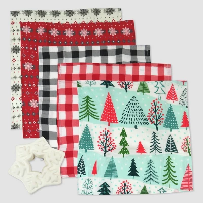 This lovey and teether set is just right for a teething baby. It comes with 5 soft 100% organic cotton muslin loveys and a detachable snowflake teether. Just tie the lovey to the teether for extra comfort. And it is so easy to change the lovey for another cute look! This set makes a perfect gift this holiday.