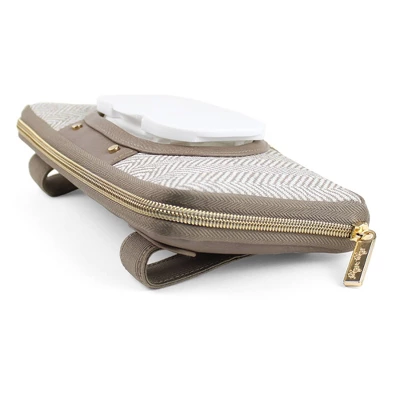 This case comfortably fits travel size wipes packs and can accommodate mid-size wipes packs of up to 64 wipes. It is designed with an opening to fit all shapes and sizes of wipe dispensers and secures wipes in the case with a durable zipper. This wipes case coordinates beautifully with the Itzy Ritzy Boss Plus Diaper Bag Backpack.