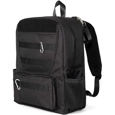 - Tactical Advantage – Built in Tactical MOLLE / PALS compatible webbing gives you the flexibility to use this diaper bag however you need to. A hook-and-loop section above the webbing allows you to proudly display your collection of patches, and two carabiners are included to get you started.