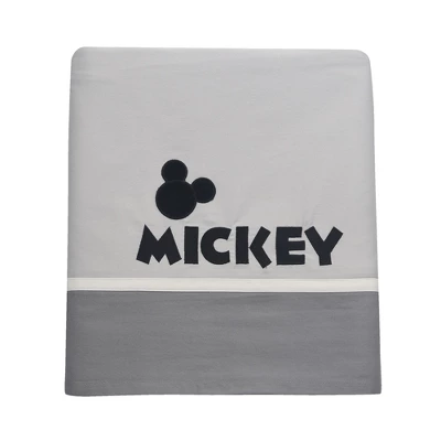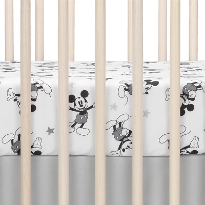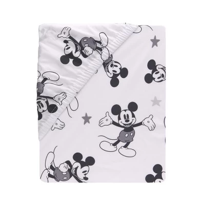 - Coordinating white ground 100% cotton breathable fitted crib sheet with multiple Mickeys