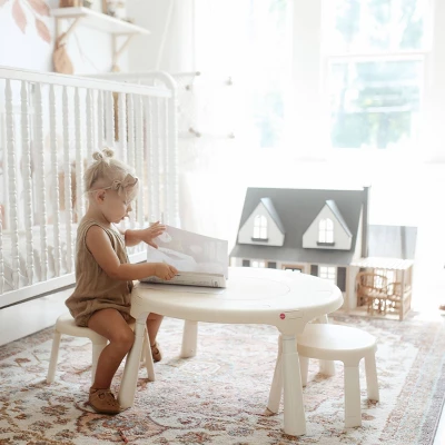 - With a push of a button, you can easily snap out the legs of PortaPlay Play Table and store it away!