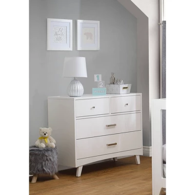 The Sorelle Soho 4 Drawer Dresser with a durable design and a modern timeless style, it will grow with your child all the way into young adulthood. Its four spacious drawers provide plenty of room for socks, sweaters, booties, blankets and other baby accessories. Combination of smart design and quality craftsmanship, this dresser provides versatile function for the baby years and beyond. Comes with Anti-tip kit and is JPMA certified. Assembly required.