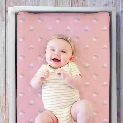 It’s Sunday in the park every day with the Pink Roses/Pink Ditsy Floral 2pk Changing Pad Cover set from The Peanutshell. Set in shades of pink, Gray, and white, these two sheets will surround your little girl with softness. The first sheet is a sophisticated watercolor print, while the second is a sweet all-over ditsy print. Microfiber fabric is touchably soft and the easiest of care; pack of two allows for quick changes. Perfect for any little girl’s room!