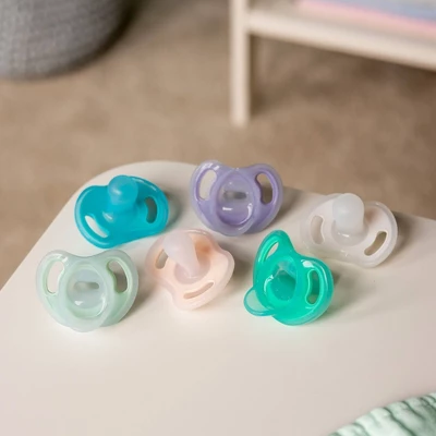 Our Ultra-Light Silicone pacifier is our lightest ever pacifier and is light enough to stay put in baby’s mouth for longer helping babies to stay calmer, soothed and happier for longer. As the symmetrical silicone baglet is fully reversible, there is no ‘wrong’ side-up so the pacifier will always be placed correctly in your baby’s mouth, even when they put it in their mouth themselves.