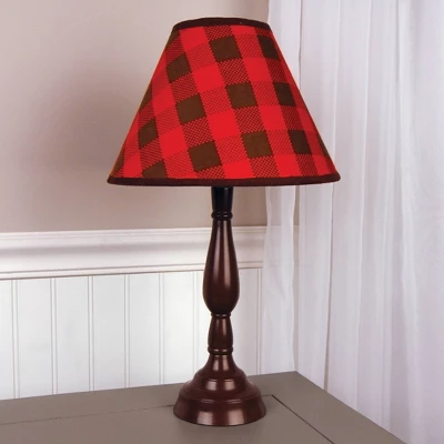 Add the finishing touch to any room with this charming Northwoods Lamp Shade by Trend Lab. Lamp shade features a pinecone brown and deep red check print and is finished with a brown trim. Shade is Uno Style so no harp is needed as the wire fitting is permanently attached to the shade. This shade attaches directly to the lamp socket. Lamp shade measurements: 4″ diameter top, 10″ diameter bottom, 7″ height. Lamp shade only. This lamp shade coordinates with the Northwoods collection by Trend Lab.