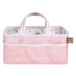 Add organization to any area of your home with the portable Herringbone Storage Caddy by Trend Lab. Perfect for dressers and changing stations, this lightly padded caddy has 8 outer pockets and a removable “T” separator for maximum versatility. The body, handles, and lining feature a sketched herringbone print in a gray and white background with white trim. Keep diapers, wipes, and other necessities tidy while traveling from room to room. Caddy also functions as an organizer for crafts, picnics, pet supplies, etc. Measures 12.5 in x 6 in x 8 in.